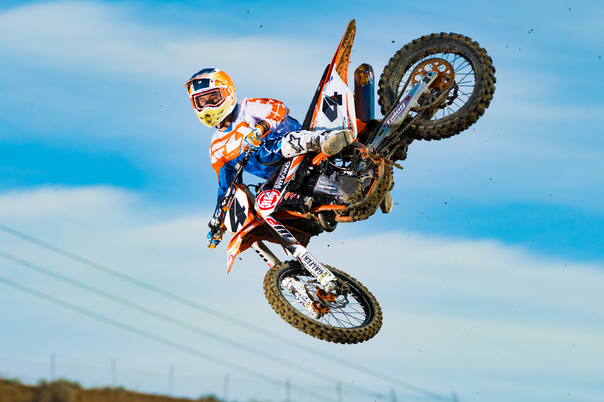(Blake Baggett wearing the Blue and Orange Kinetic Crux Graphic. Photo By Simon Cudby)