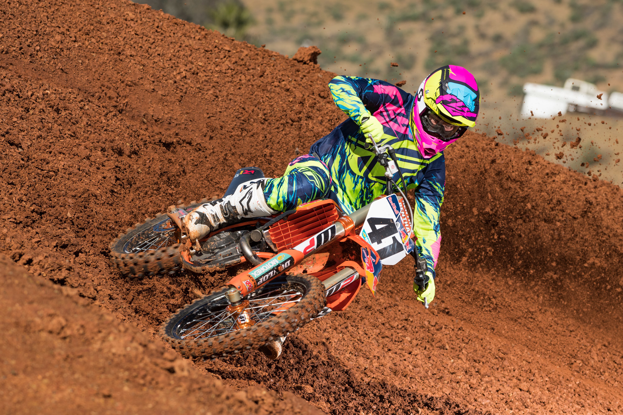 (Trey Canard wearing the Hi-Vis and Pink Relapse Graphic. Photo By Simon Cudby)